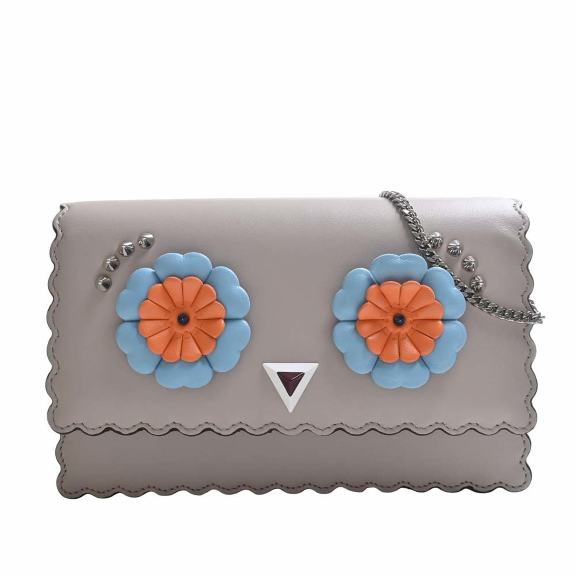 FENDI Leather Chain Shoulder Long Wallet 8M0346 Gray Ladies