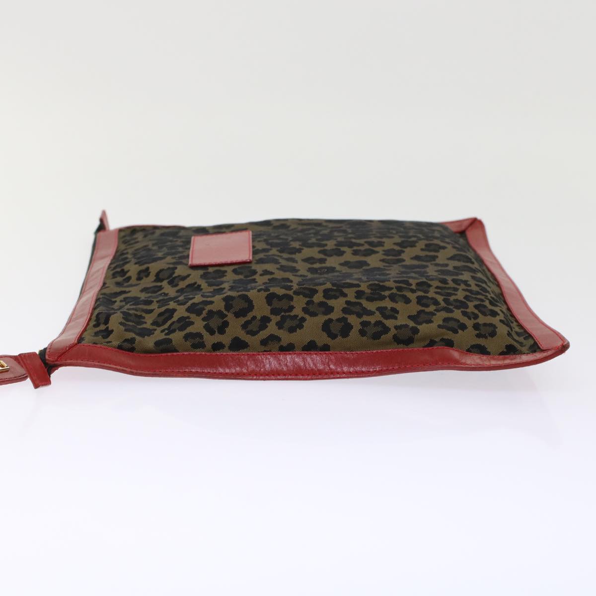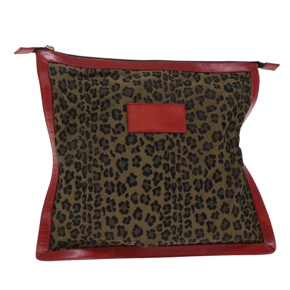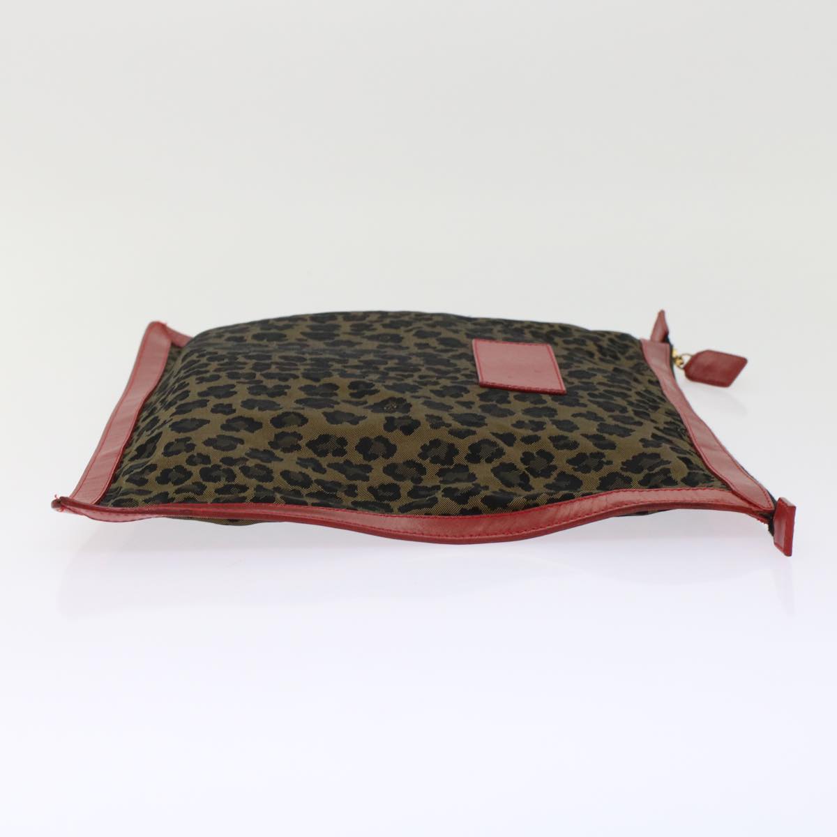 FENDI Leopard Clutch Bag Nylon Leather Black Brown Red Auth yk7980