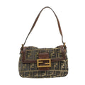 FENDI Mamma Baguette Zucca Canvas Shoulder Bag freeze Black Brown Auth am154b