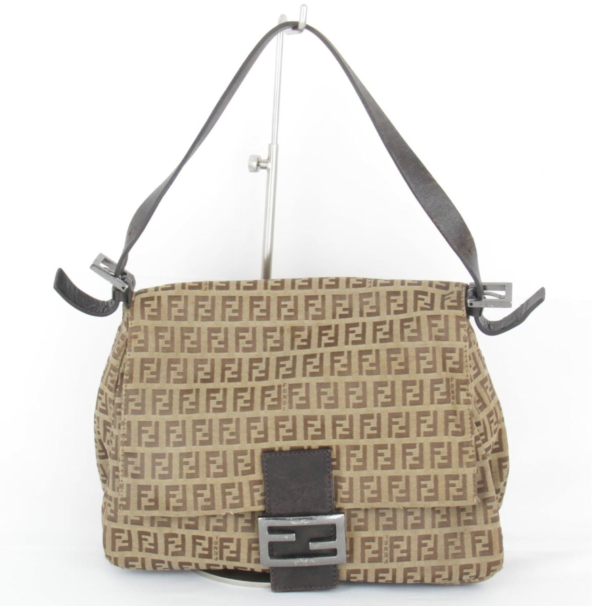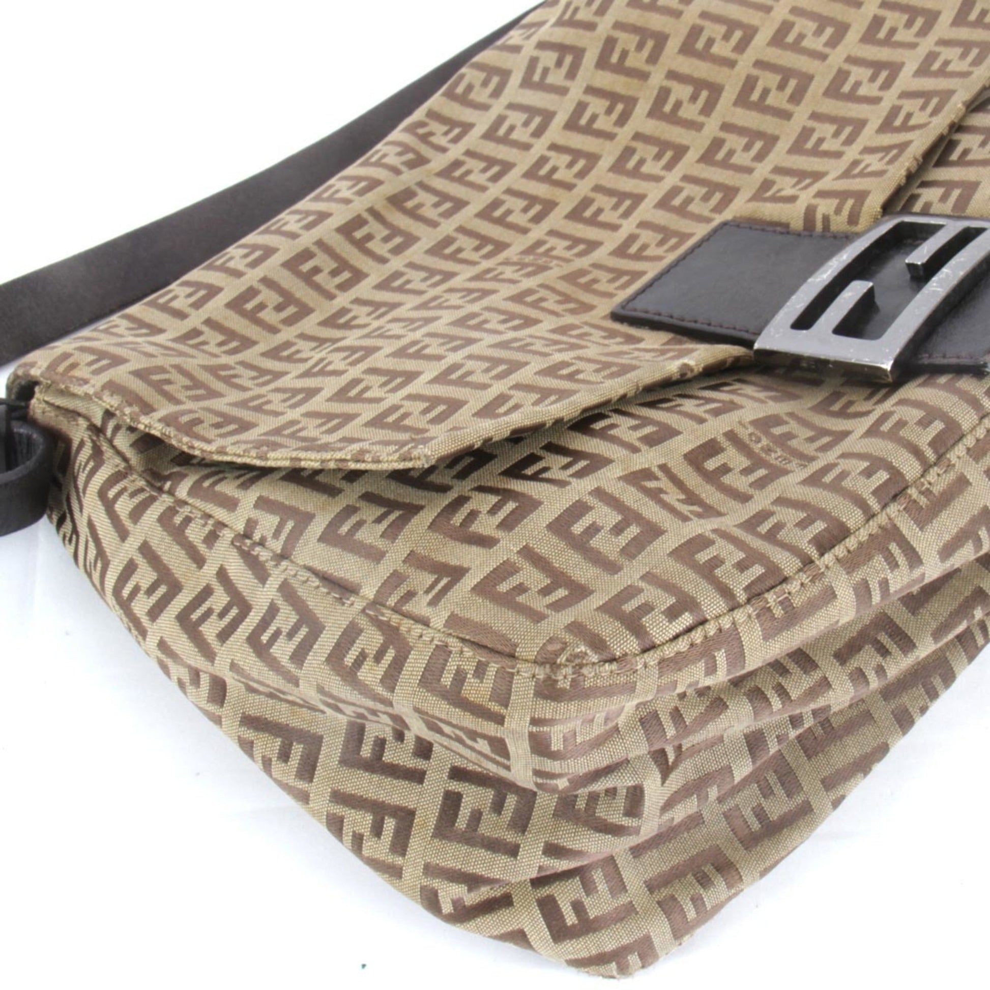 FENDI Mamma Bucket Zucca Pattern Shoulder Bag Beige Ladies