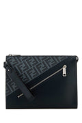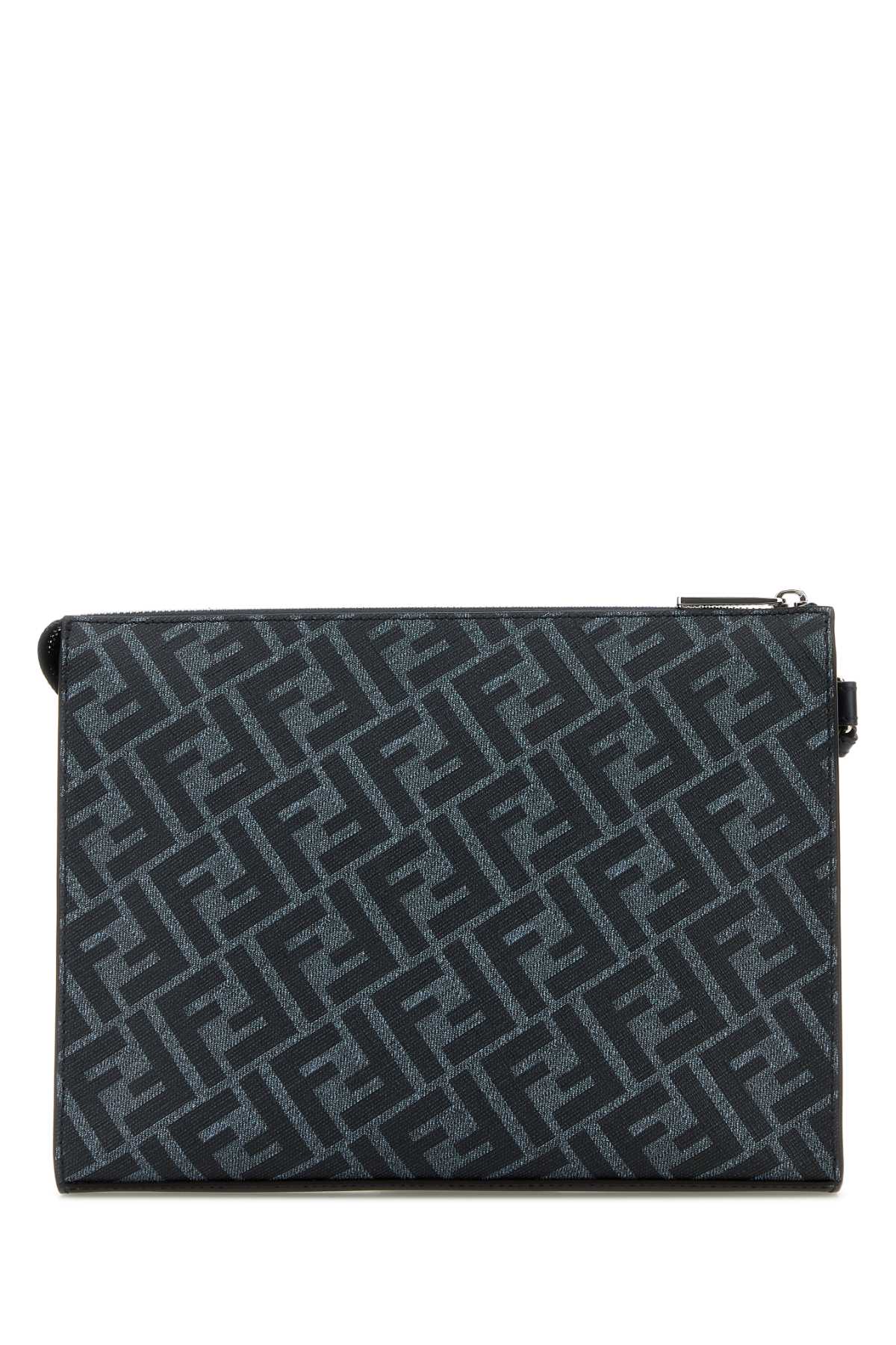 Fendi Men Embroidered Fabric And Leather Clutch