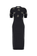 FENDI MIDI Stretch Wool Dress with Sequined Flowers