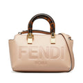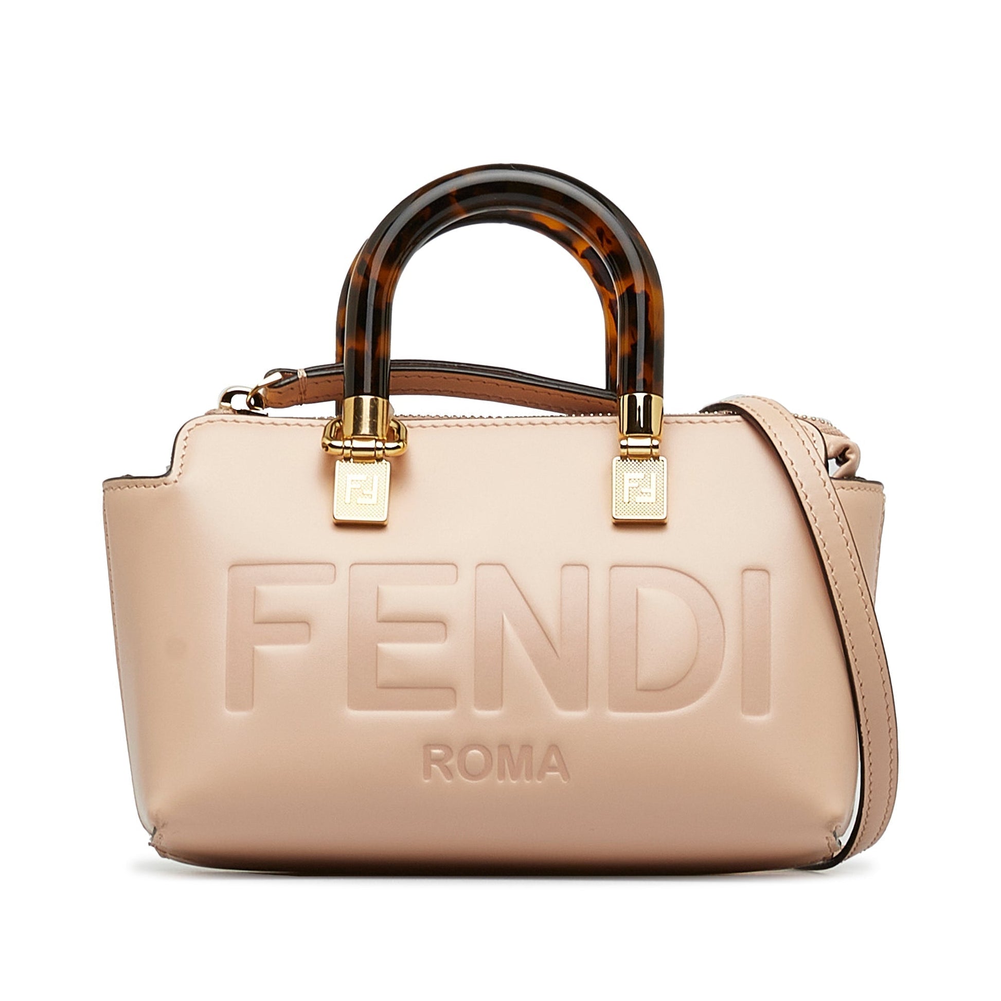 The Mini By The Way Tote features a leather body, rolled plexi handles, a detachable flat leather strap, a top zip closure, and an interior slip pocket. Comes with dust bag
