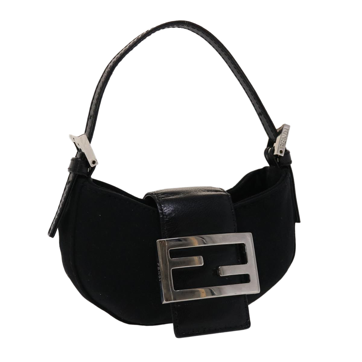 FENDI Mini Mamma Baguette Pouch Nylon Leather Black Auth 47384