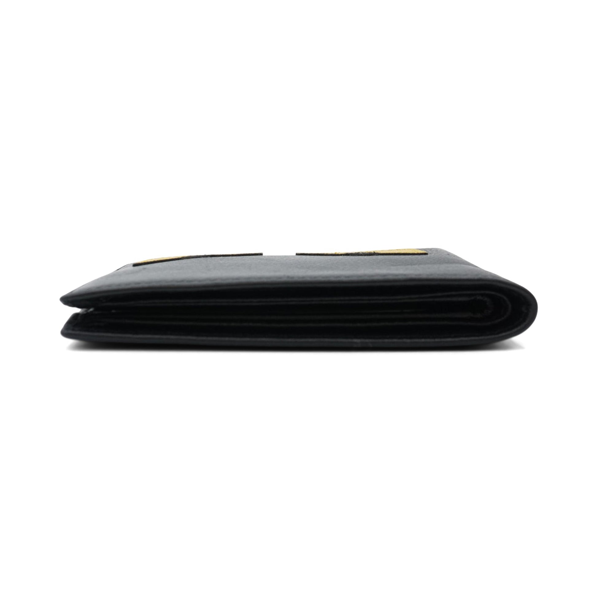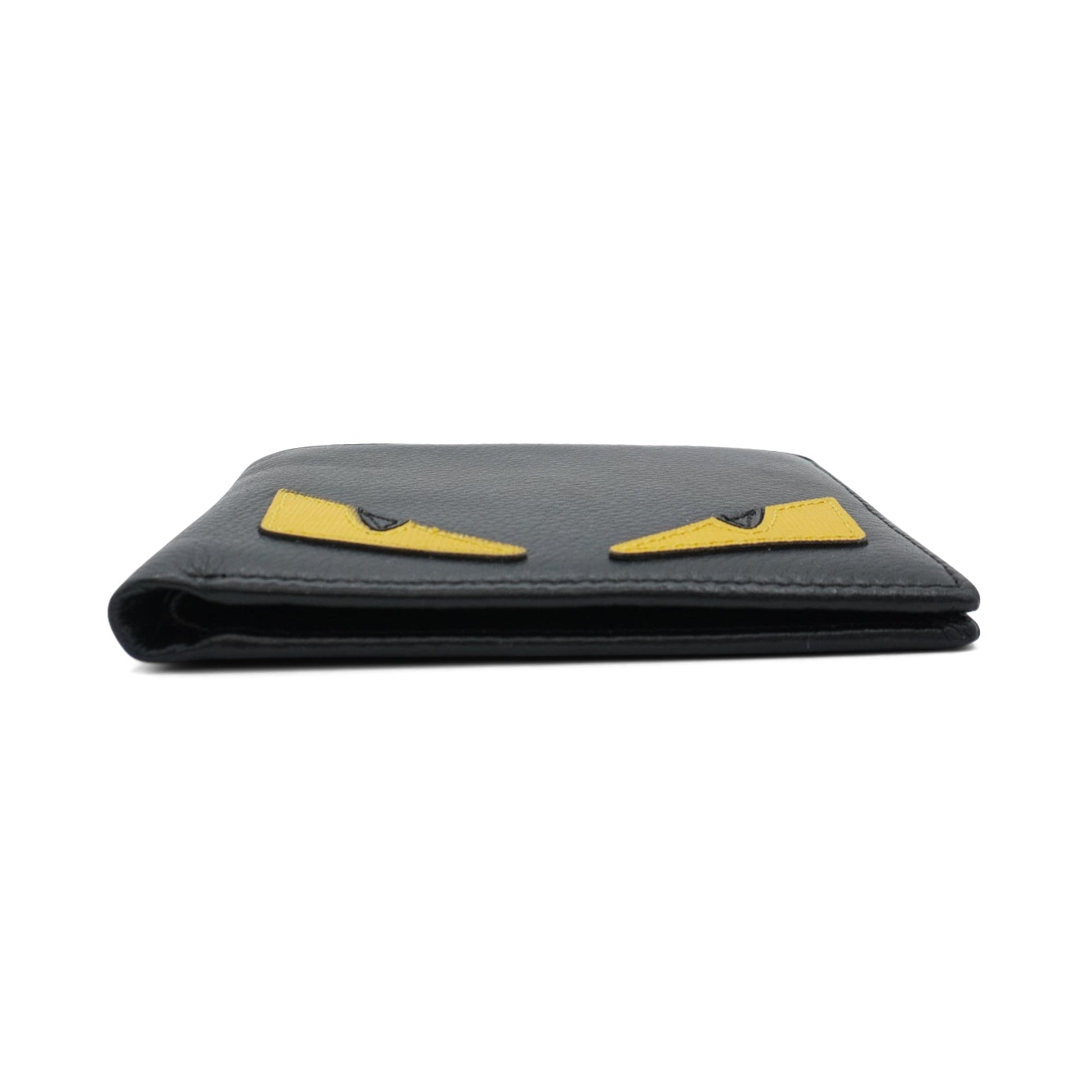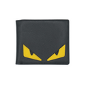 Fendi 'Monster' bi-fold wallet in black leather with yellow monster eyes on front. Interior features six cardholder pockets, two slip pockets and a bill compartment.