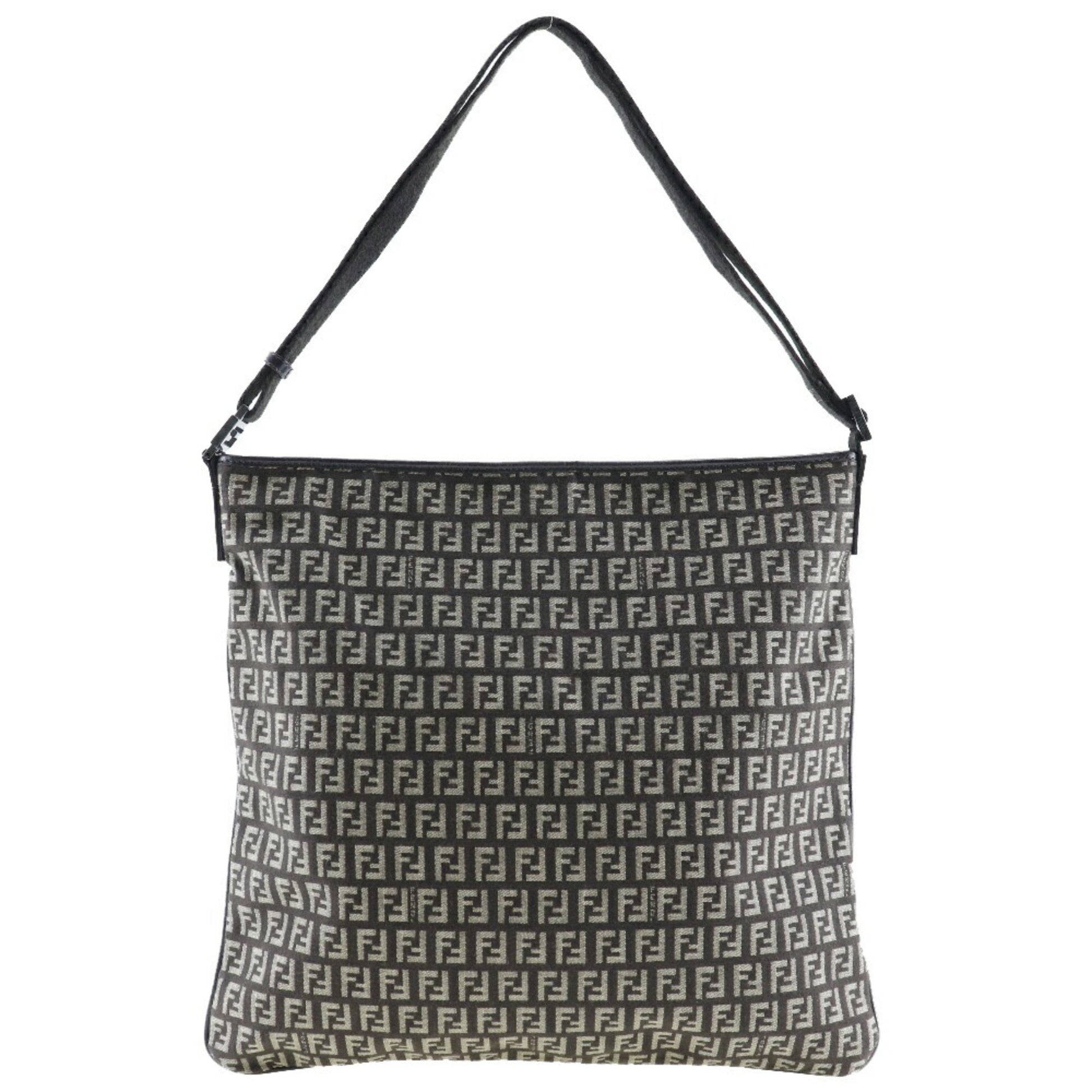 FENDI One Shoulder Bag Zucchino Canvas Made in Italy Brown Crossbody A4 Zipper Belt Unisex