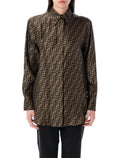 - Elegant oversized silk shirt featuring an all-over jacquard FF motif