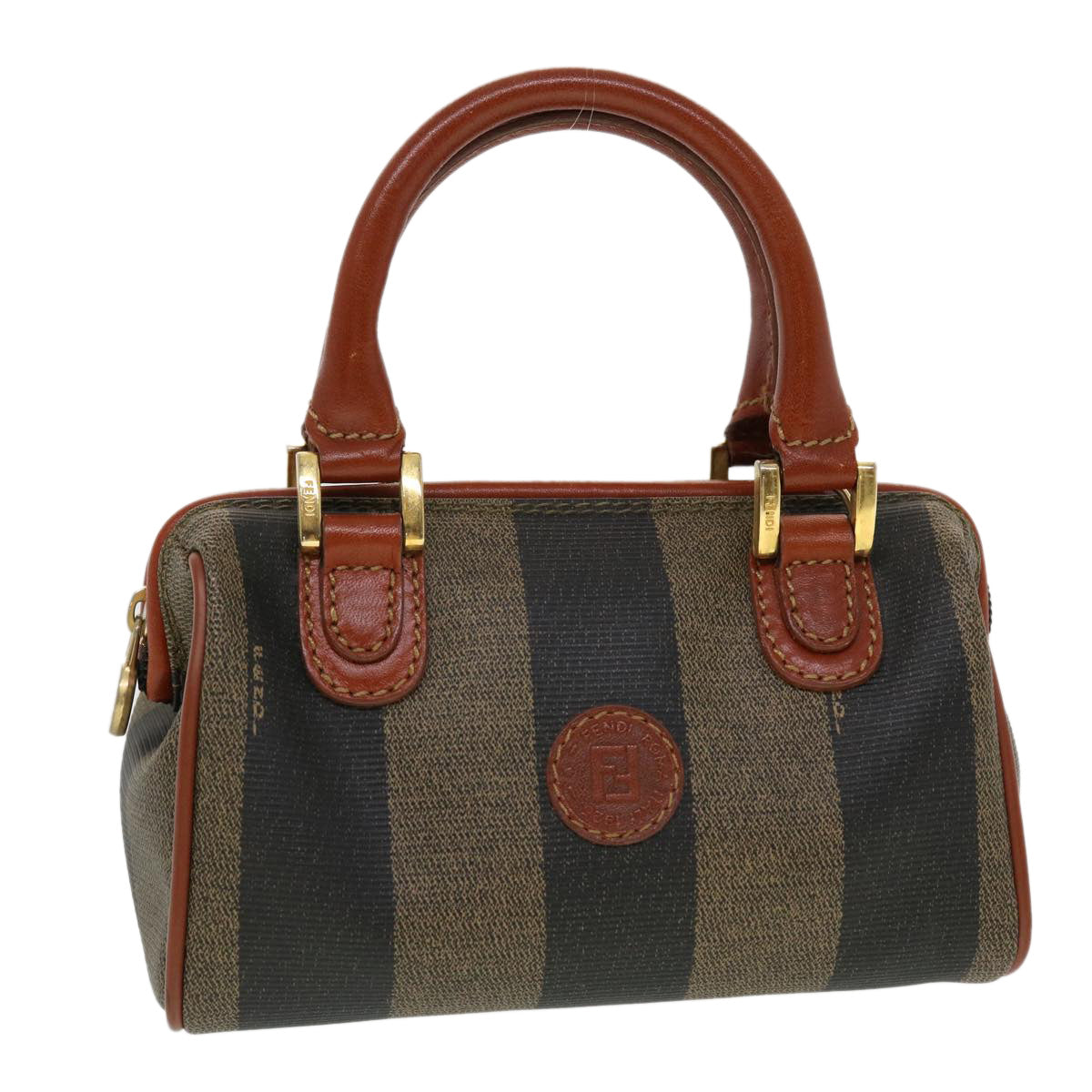 FENDI Pecan Canvas Mini Hand Bag Brown Black Auth am4474