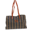 FENDI Pecan Canvas Tote Bag Coated Canvas Brown Black Auth bs7173