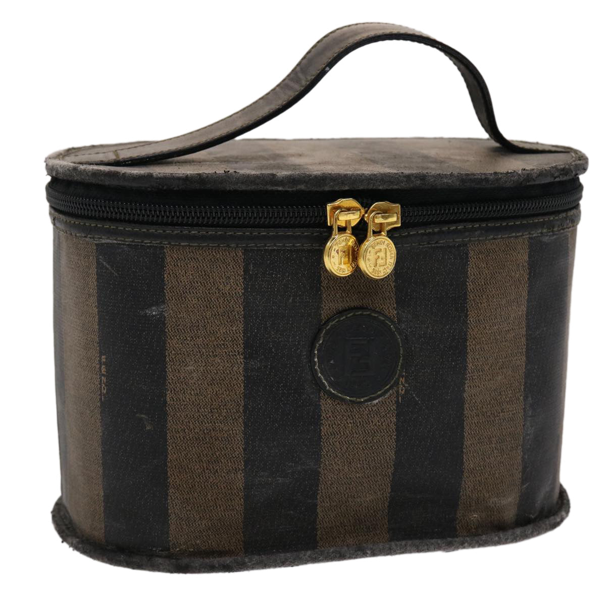 FENDI Pecan Canvas Vanity Cosmetic Pouch Black Brown Auth bs6461