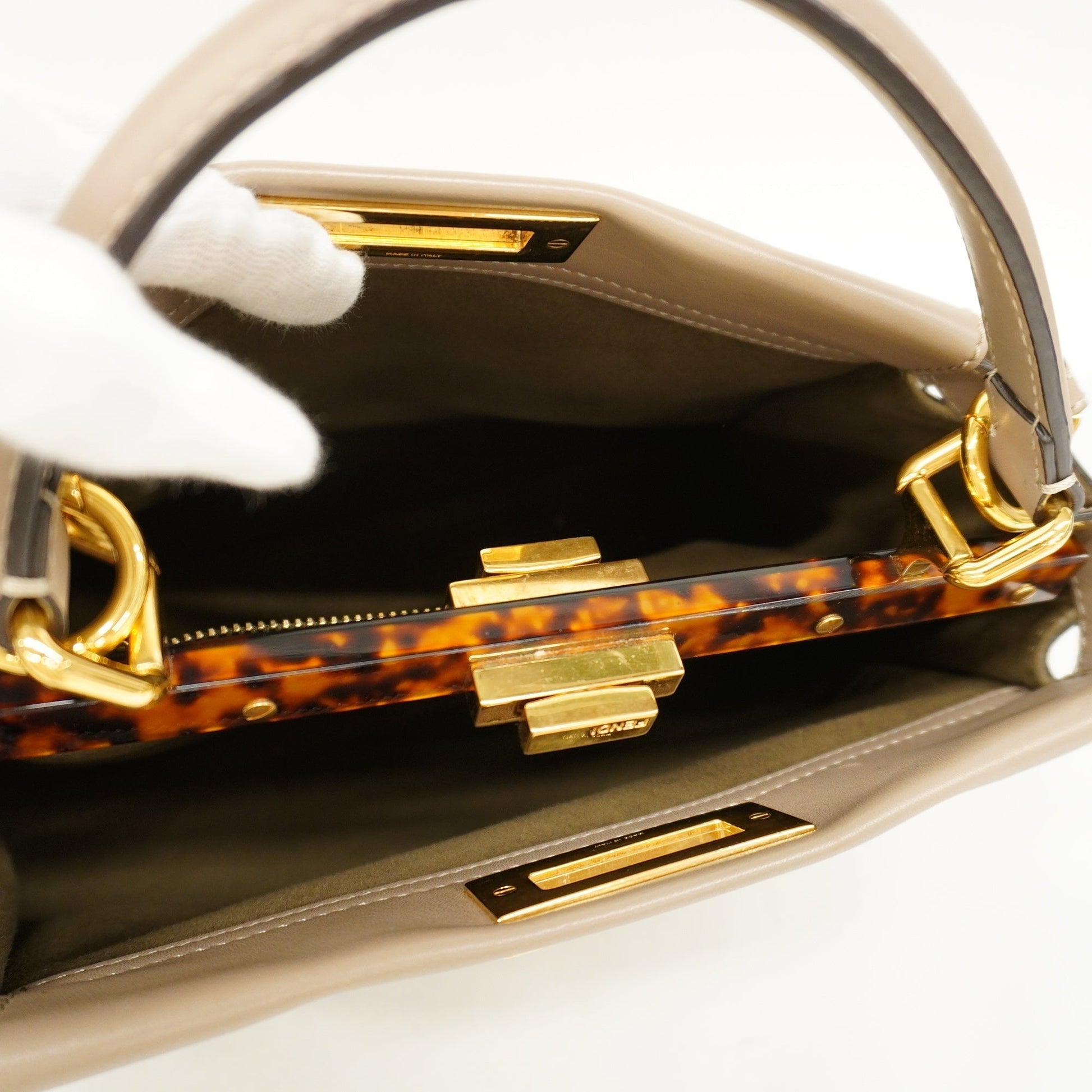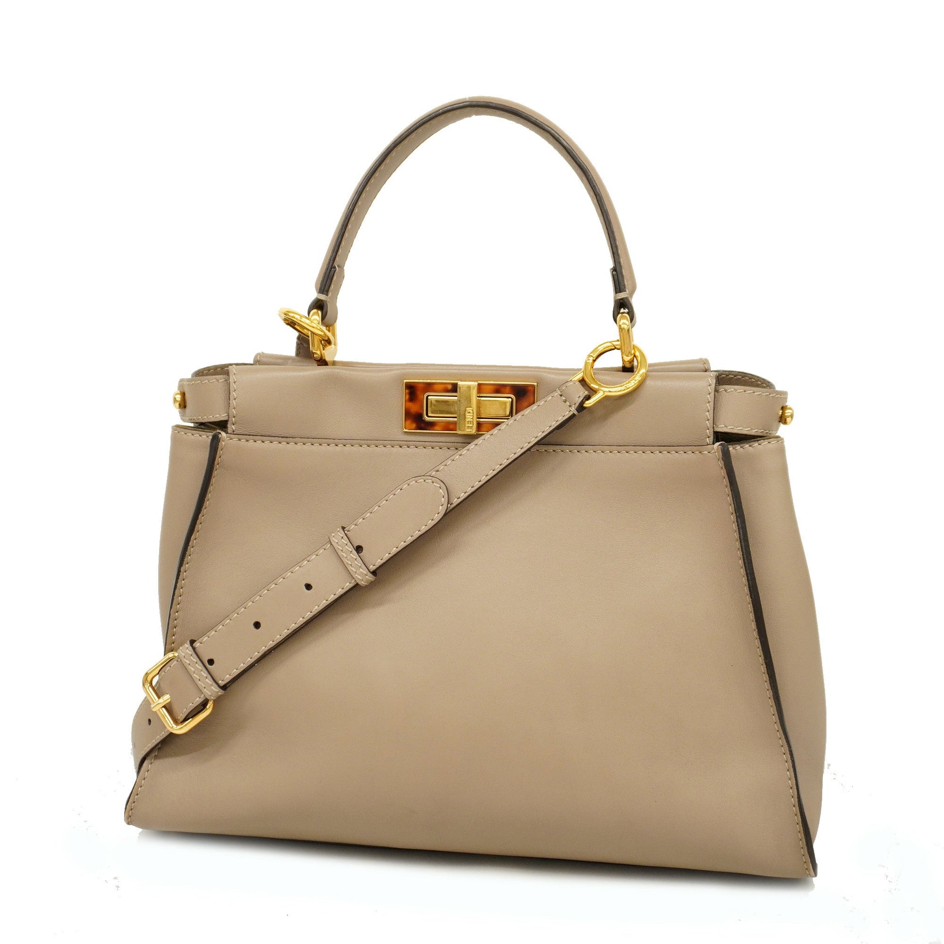 FENDI Peekaboo 2way Bag Women's Leather Handbag,Shoulder Bag Grayish