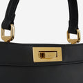 An iconic signature from the Italian fashion house, the Fendi Peekaboo is a timeless classic that will never go out of style. Sleek, stylish and effortlessly chic in the most discreet way possible, the Peekaboo was made for the refined woman with a love for luxury and an understated sense of style. Carefully crafted from black lambskin leather and a complimenting gold hardware.