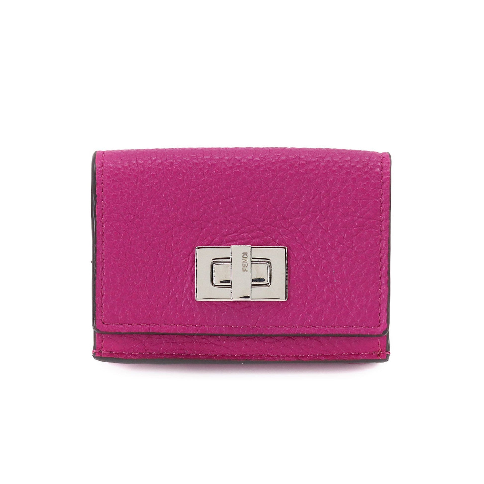 Fendi Peekaboo Trifold Wallet Leather Magenta 8M0426 Silver Metal Fittings