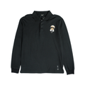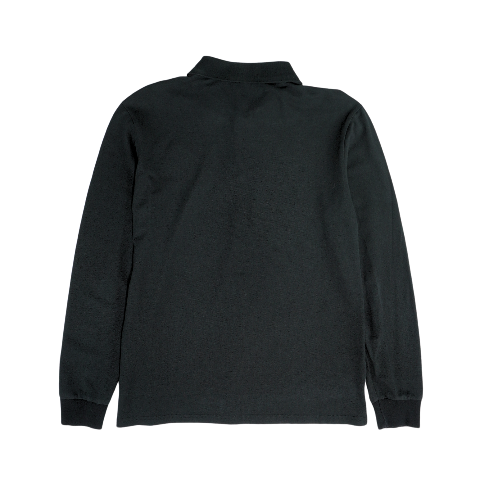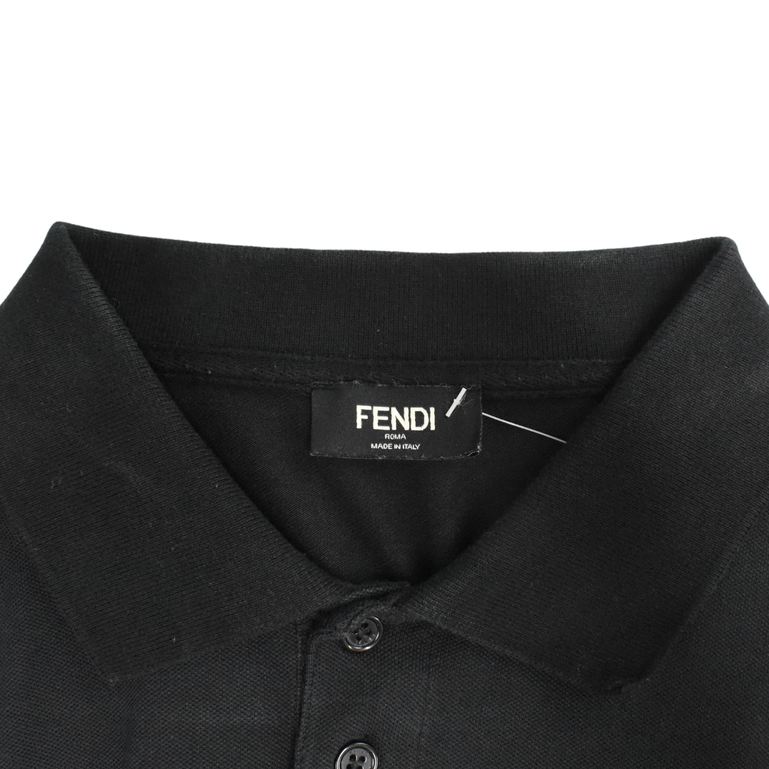Fendi long-sleeve polo top in black cotton with a leather Karl logo patch on the chest.
