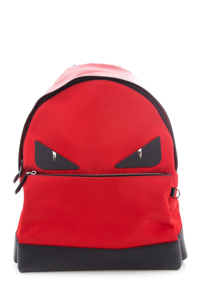 Fendi Red Calf Skin Leather & Nylon Bugs Backpack