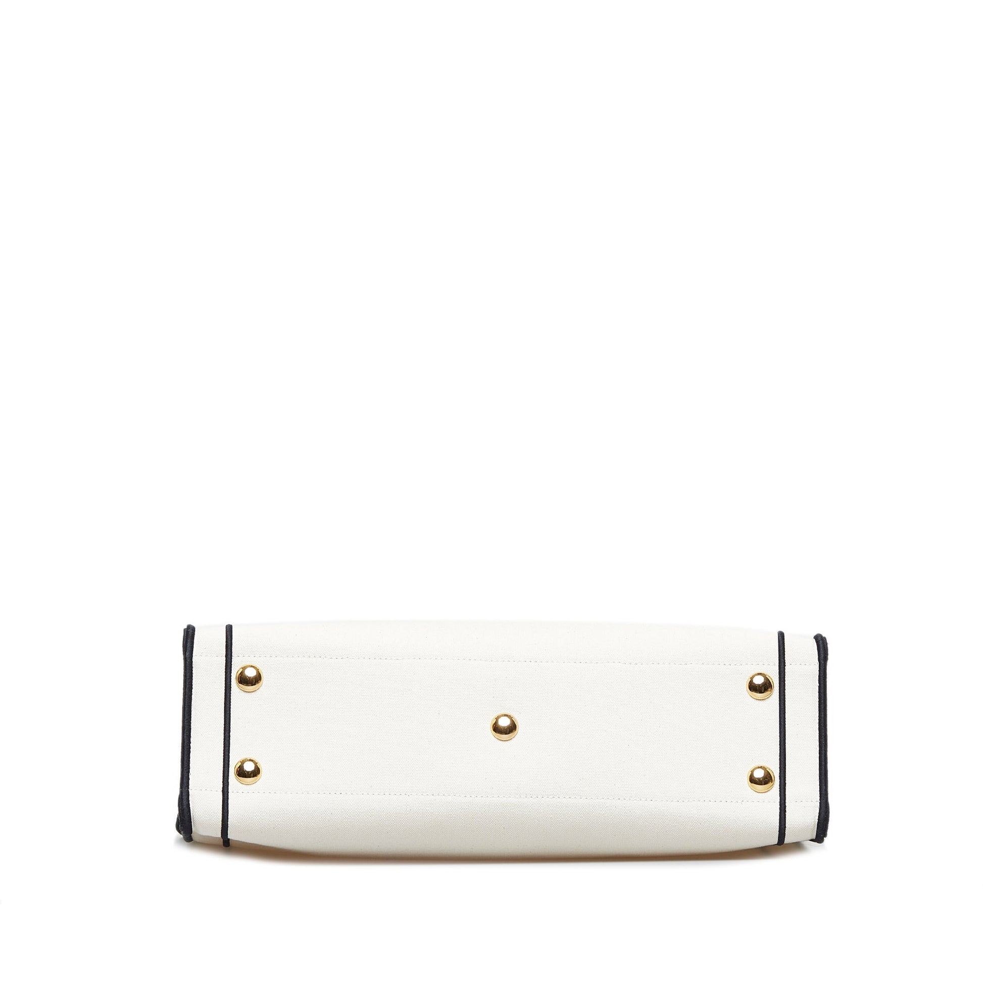 This tote bag features a canvas body, rolled handles, an open top, and an interior slip pocket. Comes with dust bag