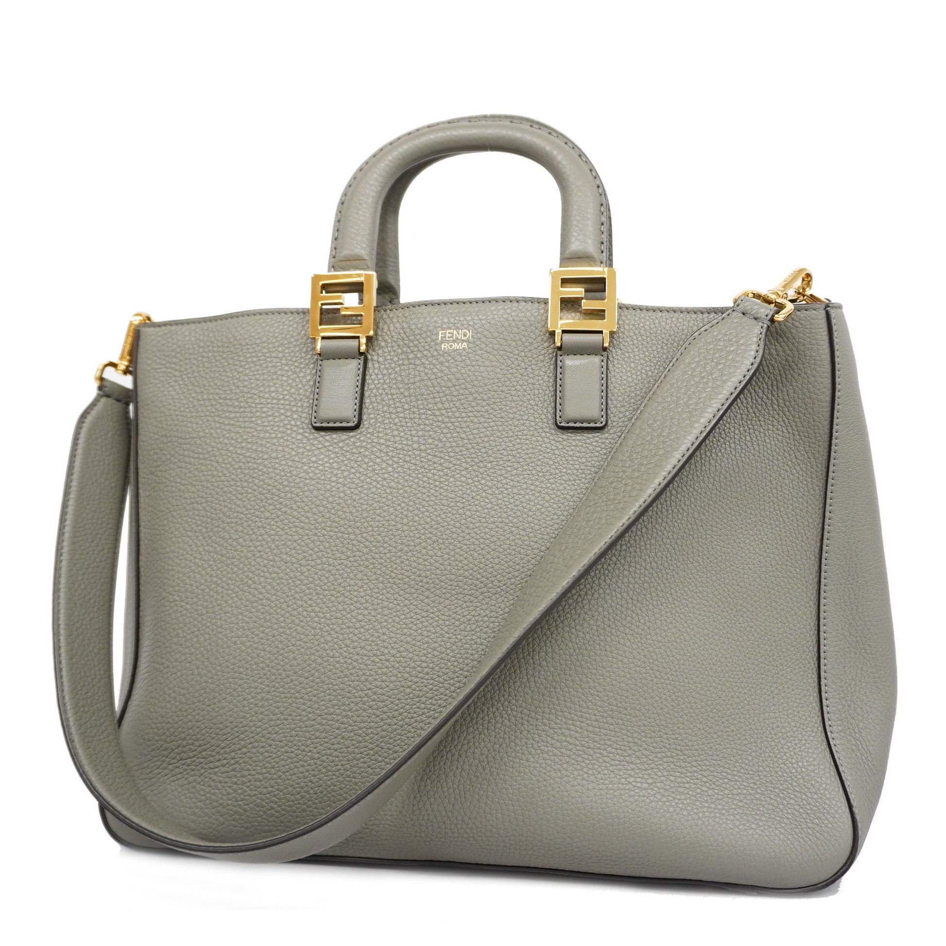 FENDI Selleria 2way Bag Peekaboo Women's Leather Handbag,Shoulder Bag Gray