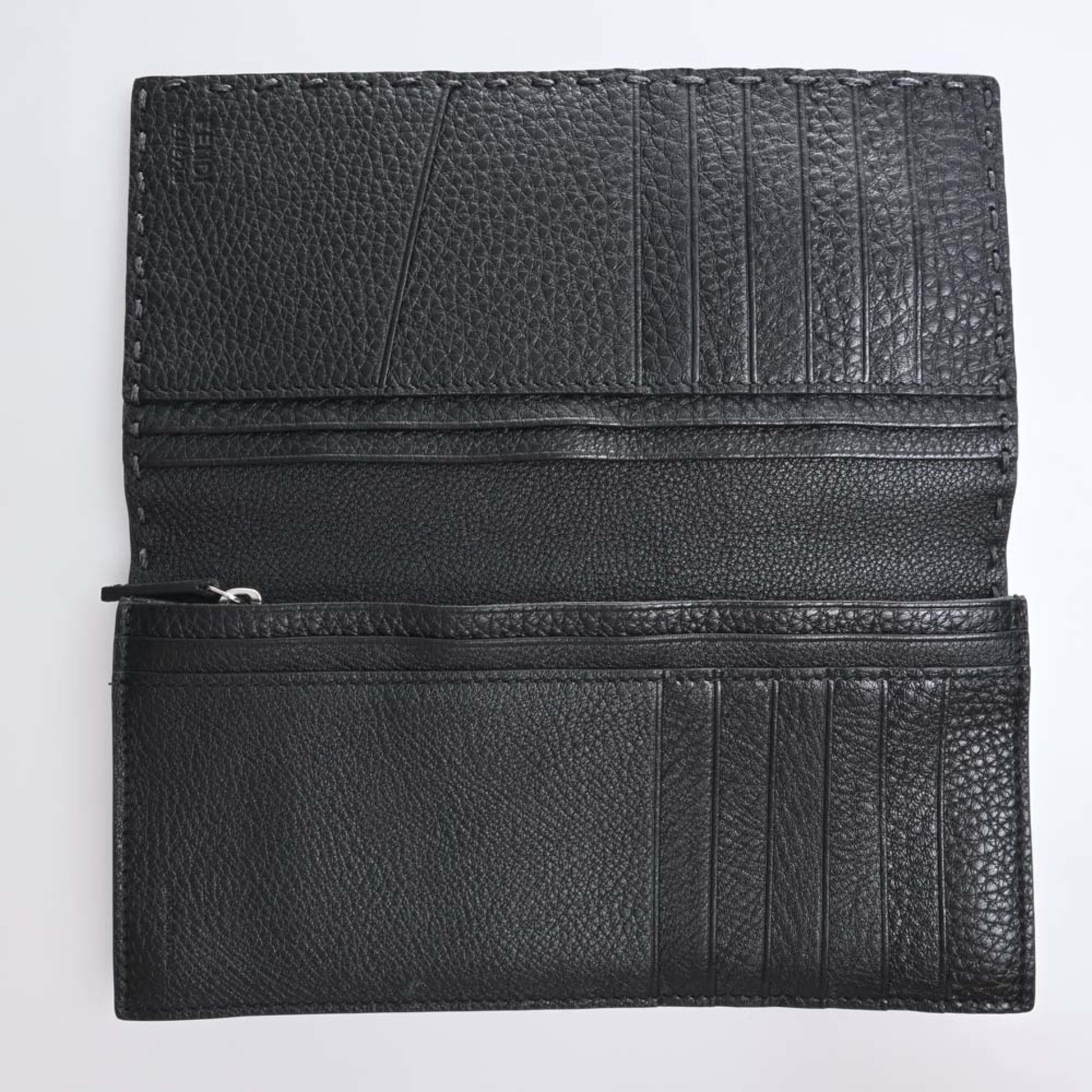 FENDI Selleria Leather Bifold Long Wallet 7M0186 Gray Men's
