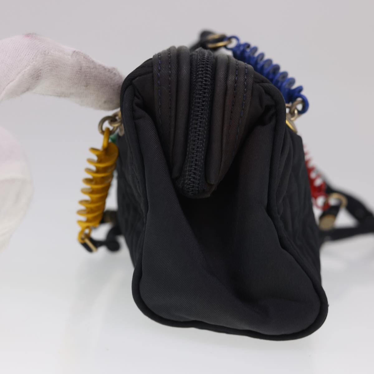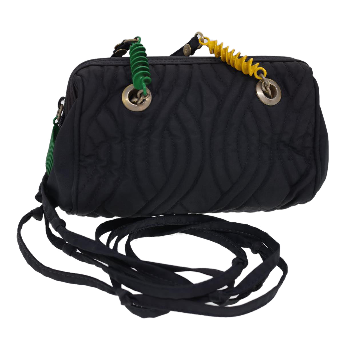 FENDI Shoulder Bag Nylon Black Multicolor Auth 40084