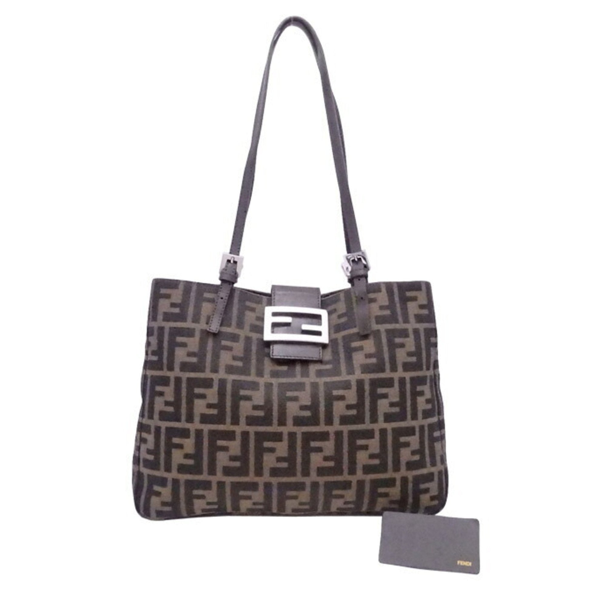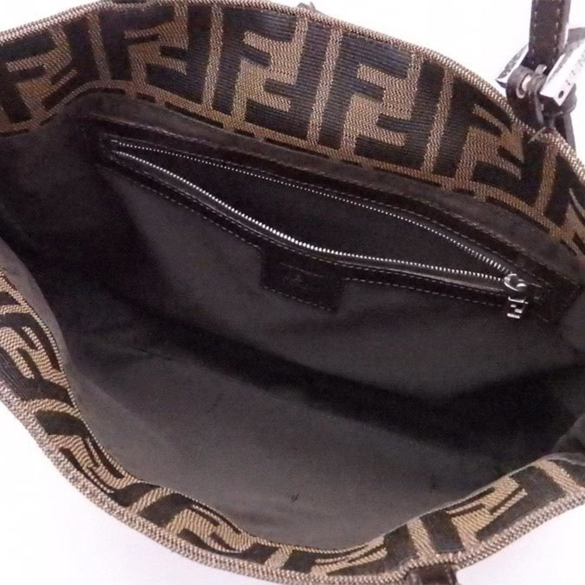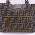 Fendi shoulder bag Zucca brown canvas x leather silver hardware ladies