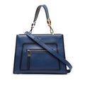 The Runaway satchel features a leather body, an exterior front zip pocket, a flat handle, a flat strap, an open top with magnetic closure, and interior zip and slip pockets Comes with dust bag