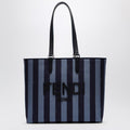 FENDI Striped Fabric Shopper Handbag with Logo and Leather Details