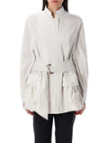 - Contrasting embroidered lettering on the left pocket for a designer detail