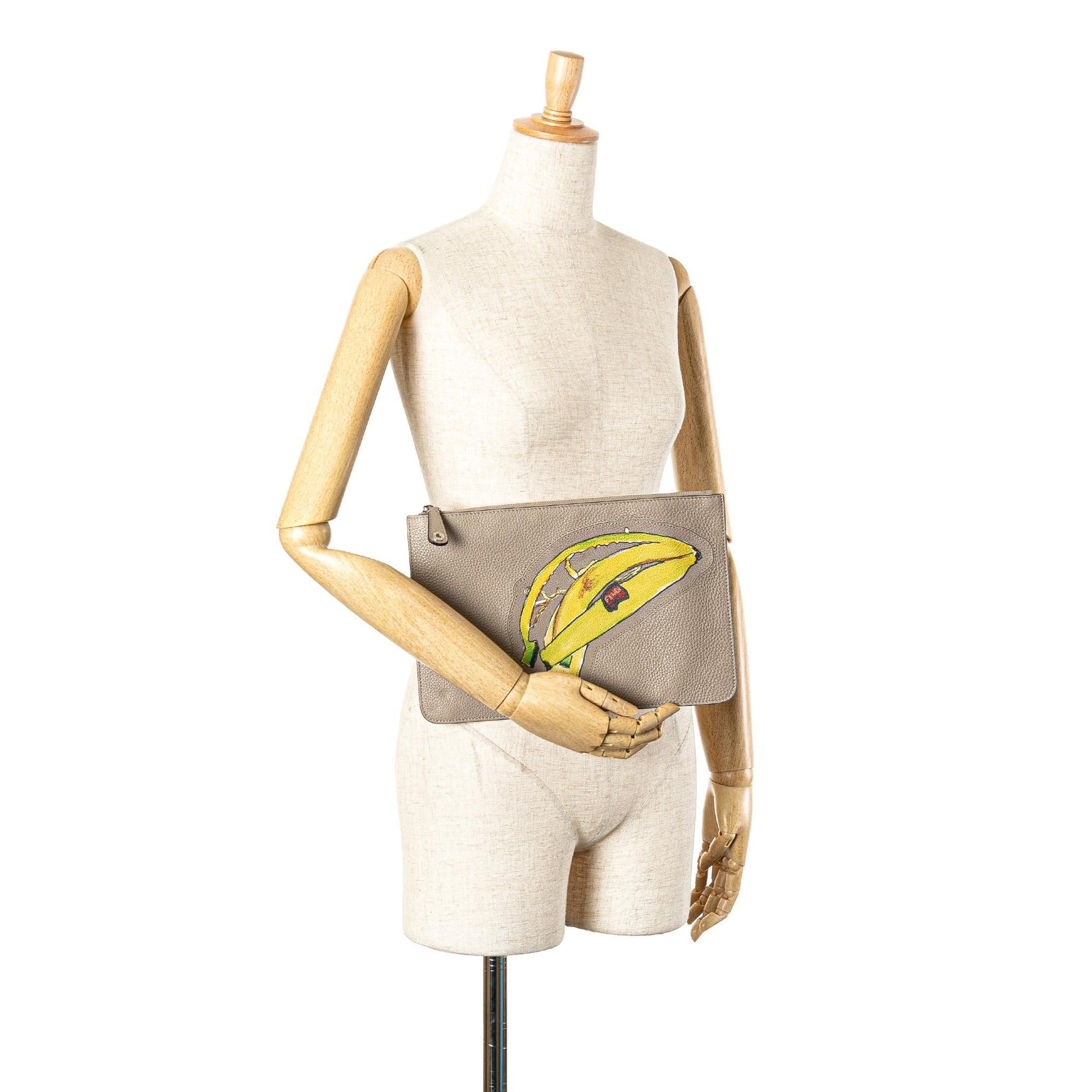 Fendi Sue Tilley Leather Banana Zip Clutch