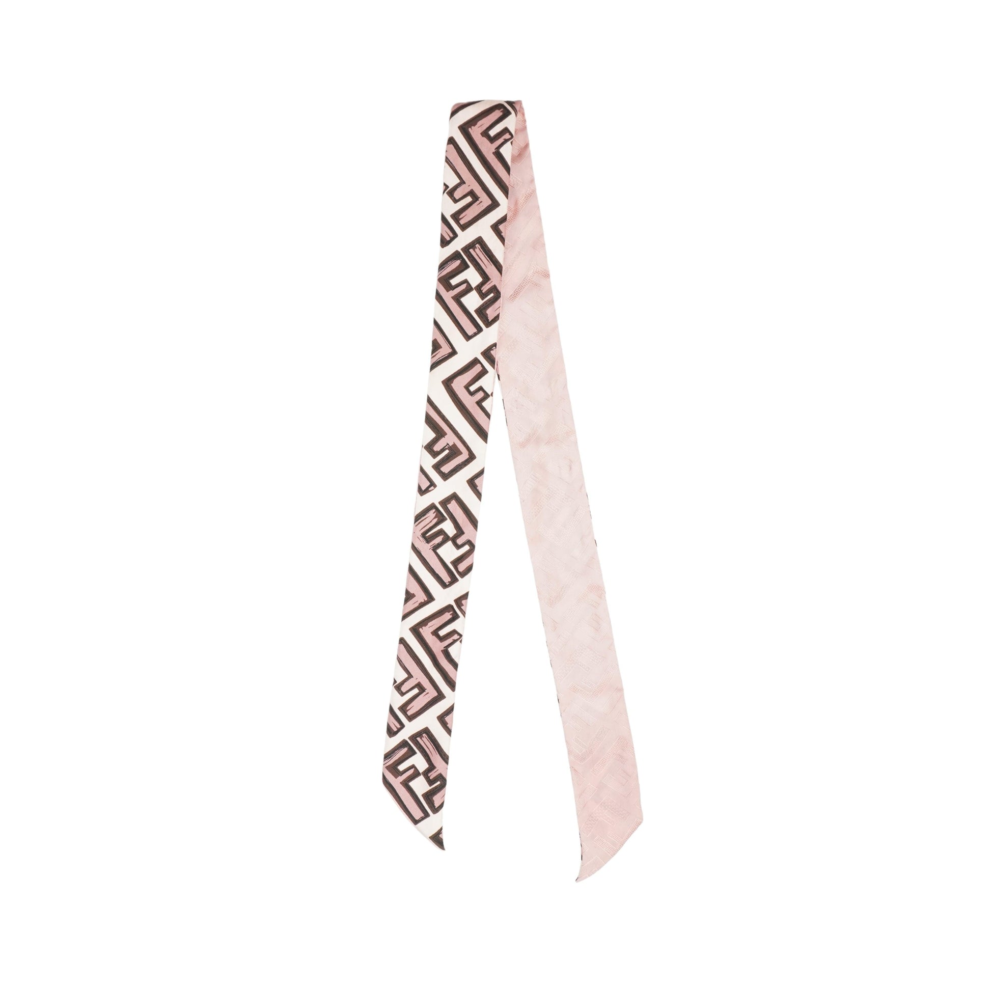 Fendi twilly scarf in pink and brown monogram silk.