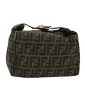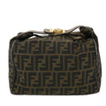 FENDI Vanity Zucca Canvas Cosmetic Pouch Black Brown Auth 40323