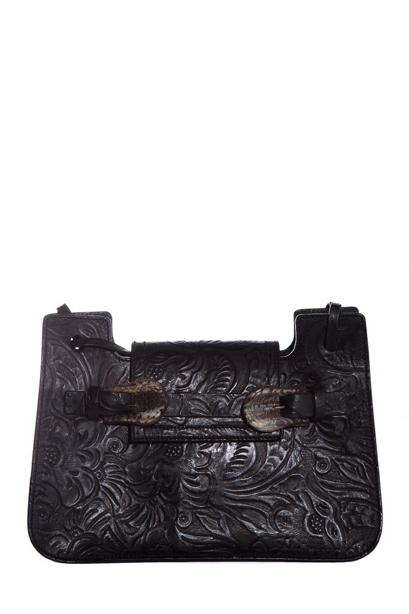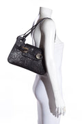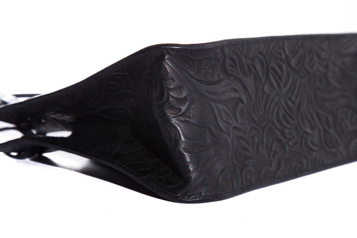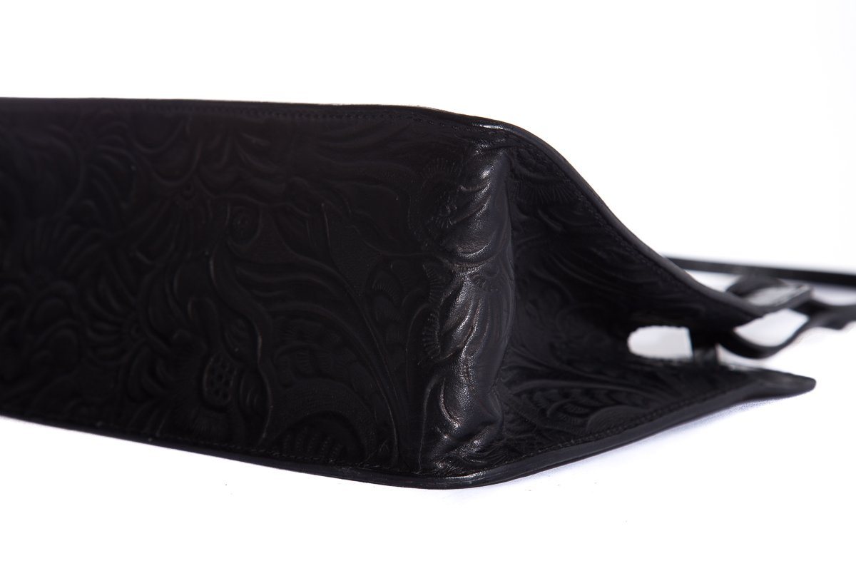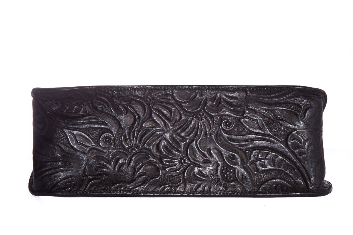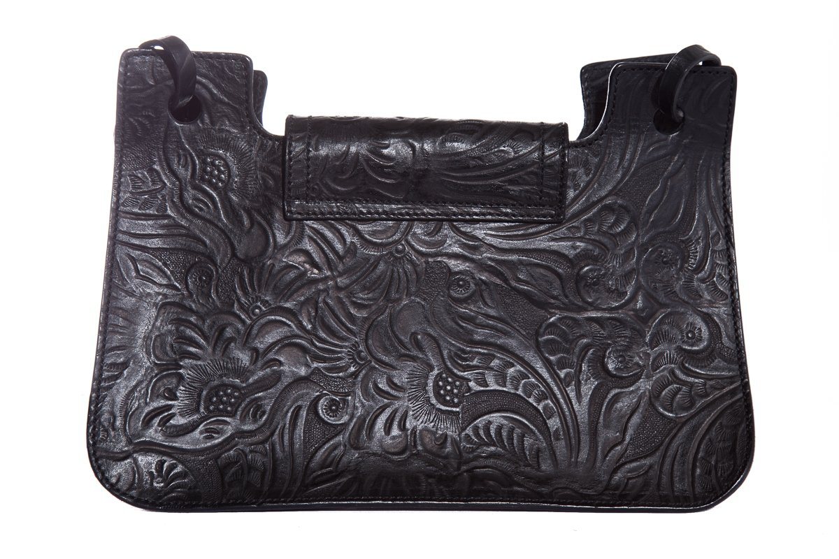 Fendi Vintage Black Leather Embossed Flower Handle Bag