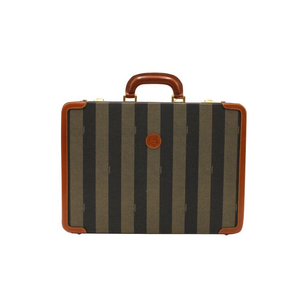 FENDI Vintage Leather & Striped Fabric Briefcase