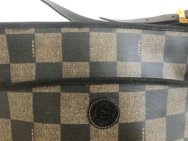 FENDI Vintage pecan chess pattern shoulder bag with FF logo motif