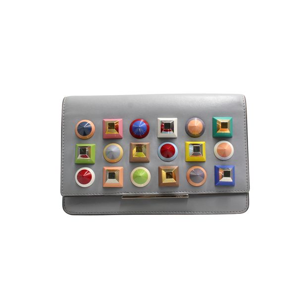 Fendi Vitello Dolce Rainbow Studded Wallet On Chain in Ardesia.