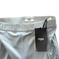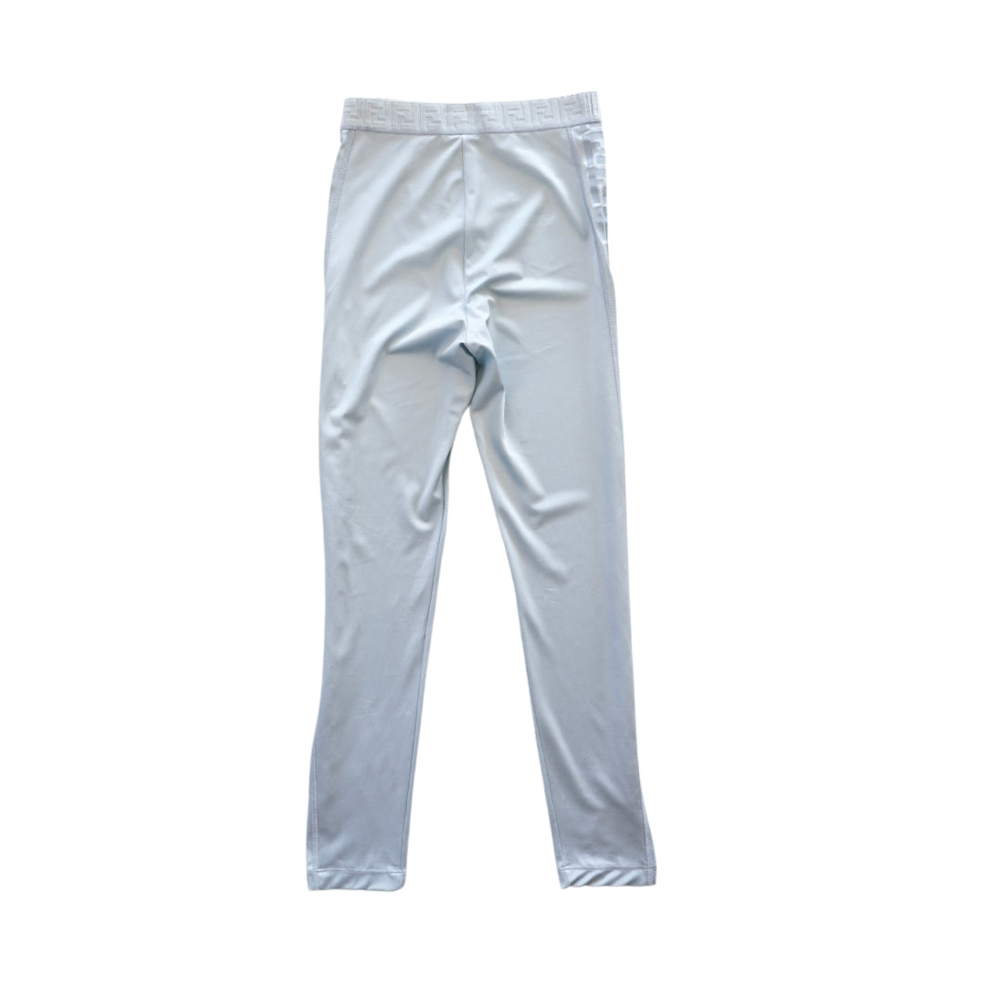Fendi high-waisted cropped workout leggings in light blue with an embroidered monogram logo elastic waistband and blue rubberized logos down the sides.