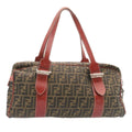 FENDI Zucca Canvas Boston Bag Brown Red Auth am1732g