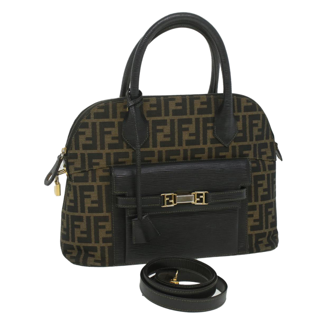 FENDI Zucca Canvas Hand Bag 2way Brown Black Auth 35833