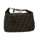 FENDI Zucca Canvas Hand Bag Nylon Brown Black Auth 48233