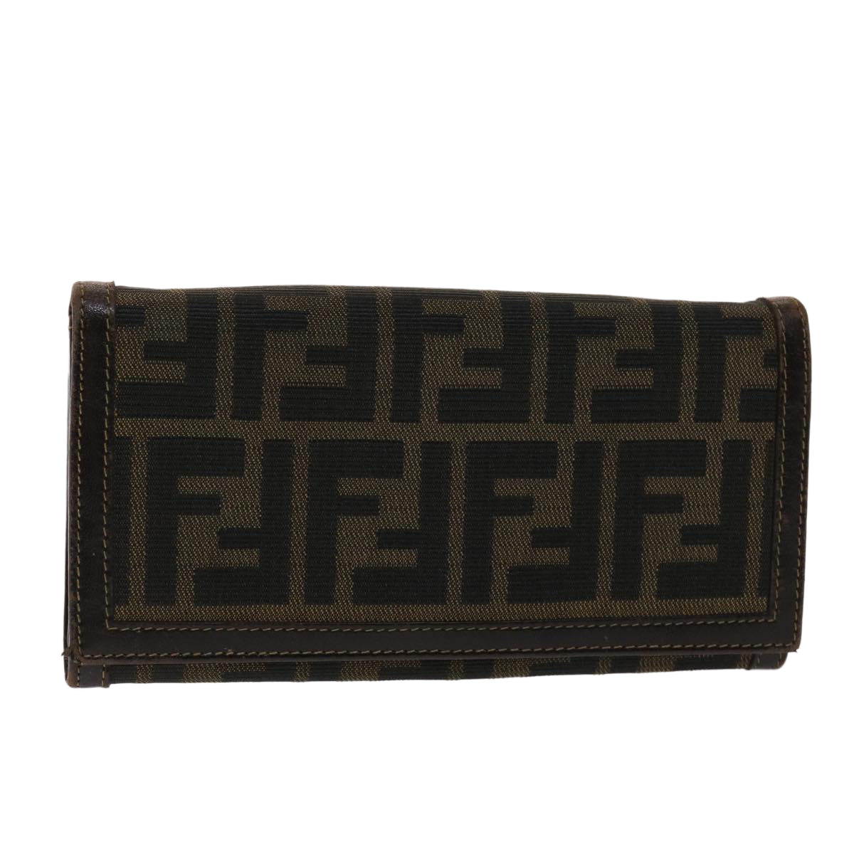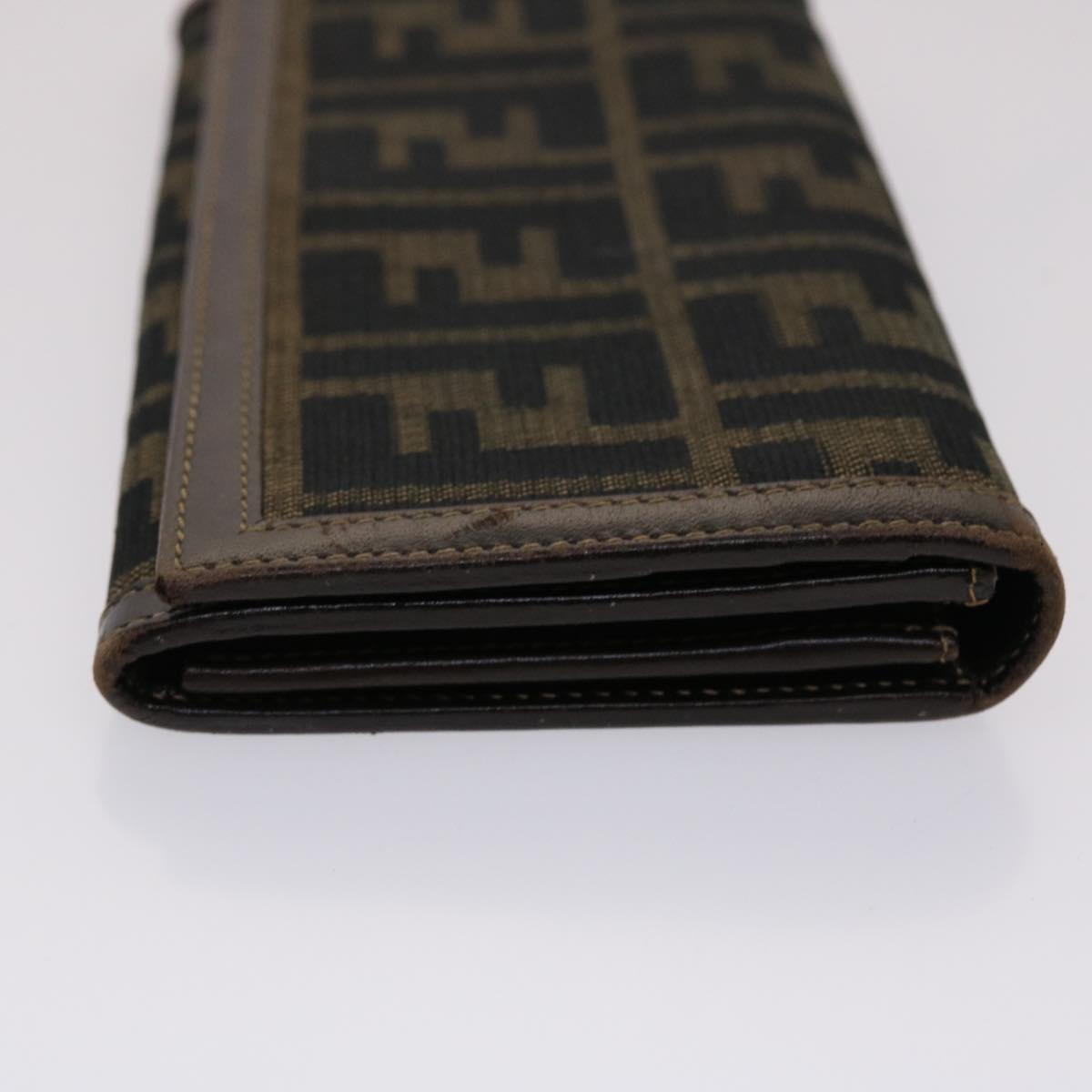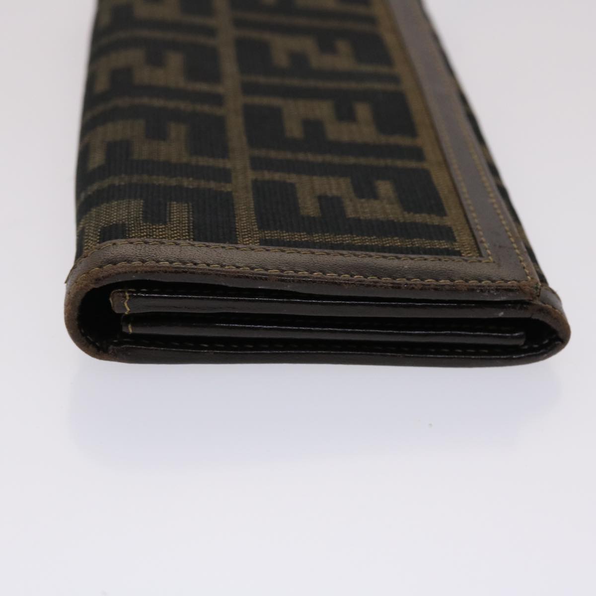 FENDI Zucca Canvas Long Wallet Black Brown 2309-30851/088 Auth ac2046