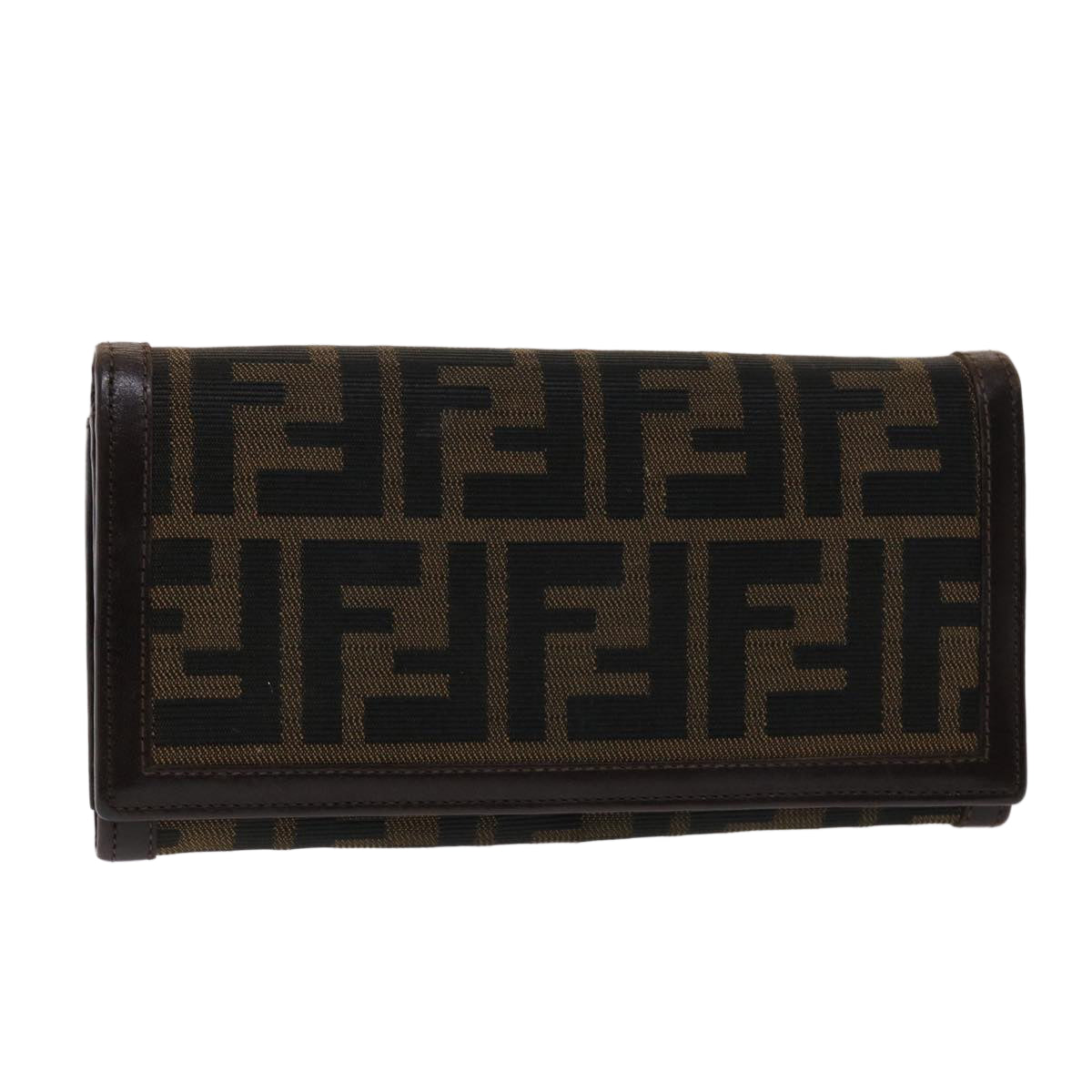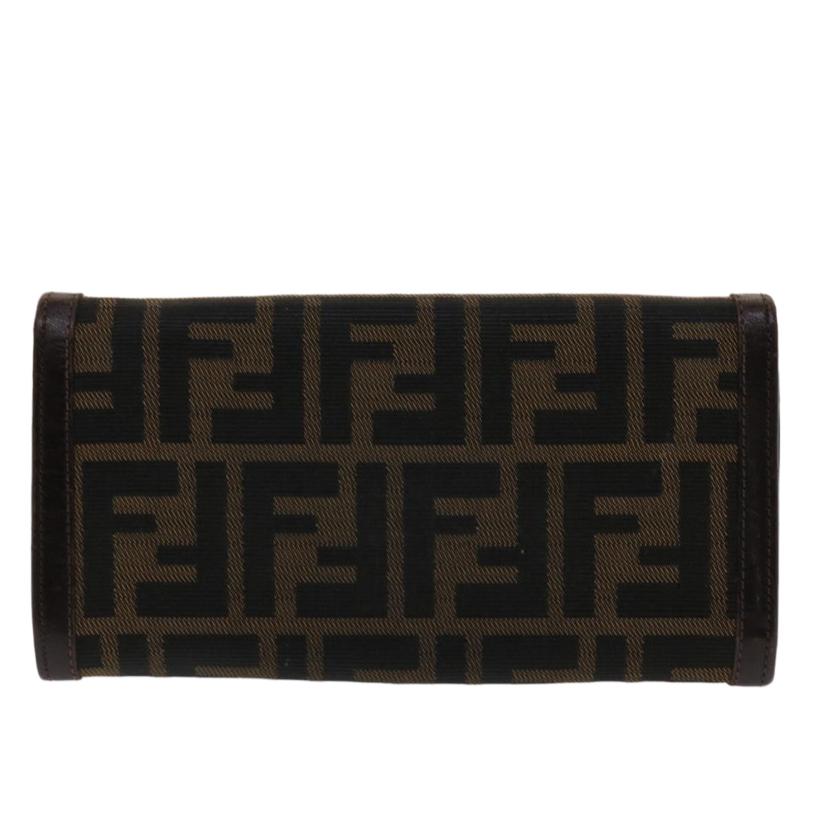 FENDI Zucca Canvas Long Wallet Black Brown Auth ac2048