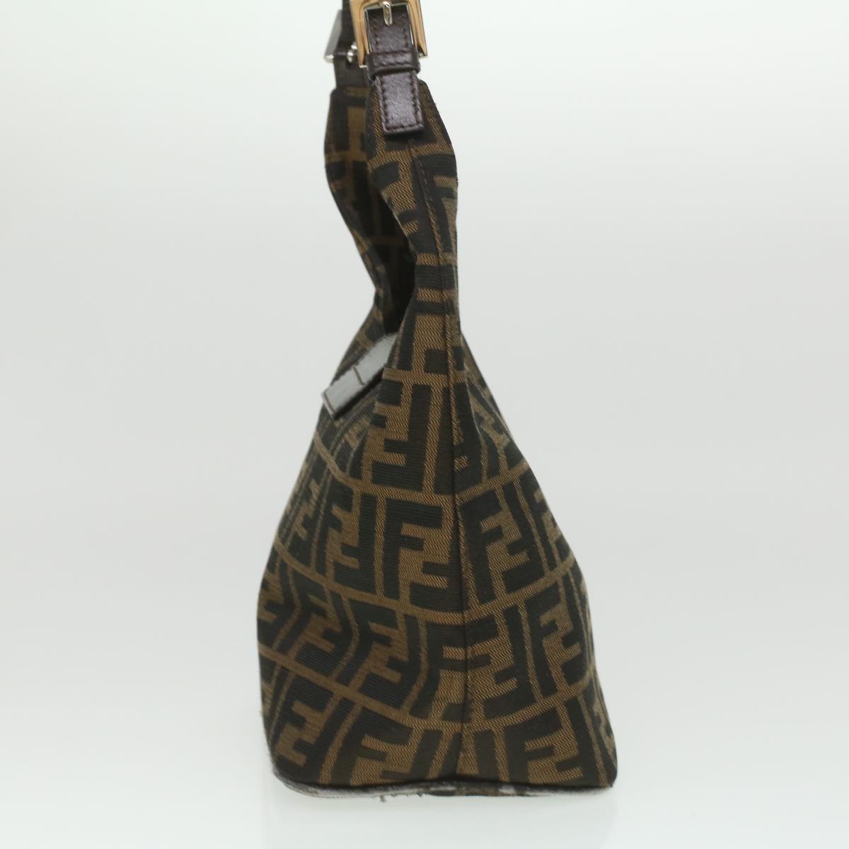 FENDI Zucca Canvas Mamma Baguette Shoulder Bag Nylon Brown Black am3962