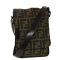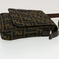 FENDI Zucca Canvas Shoulder Bag Black Brown Auth 43693