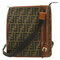 FENDI Zucca Canvas Shoulder Bag Black Brown Auth am192g