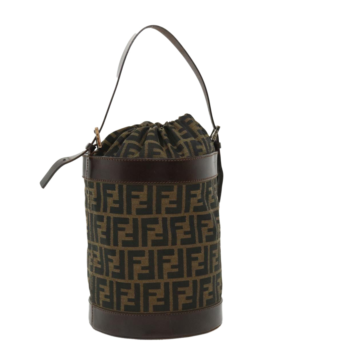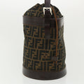 FENDI Zucca Canvas Shoulder Bag Cylindrical Brown Black Auth yk5779