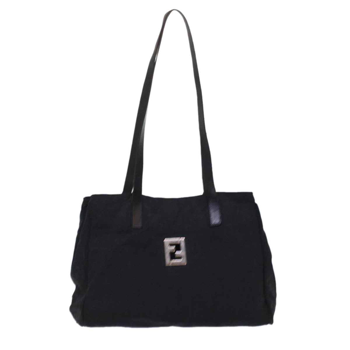 FENDI Zucca Canvas Shoulder Bag Nylon Leather Black Auth 49326