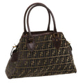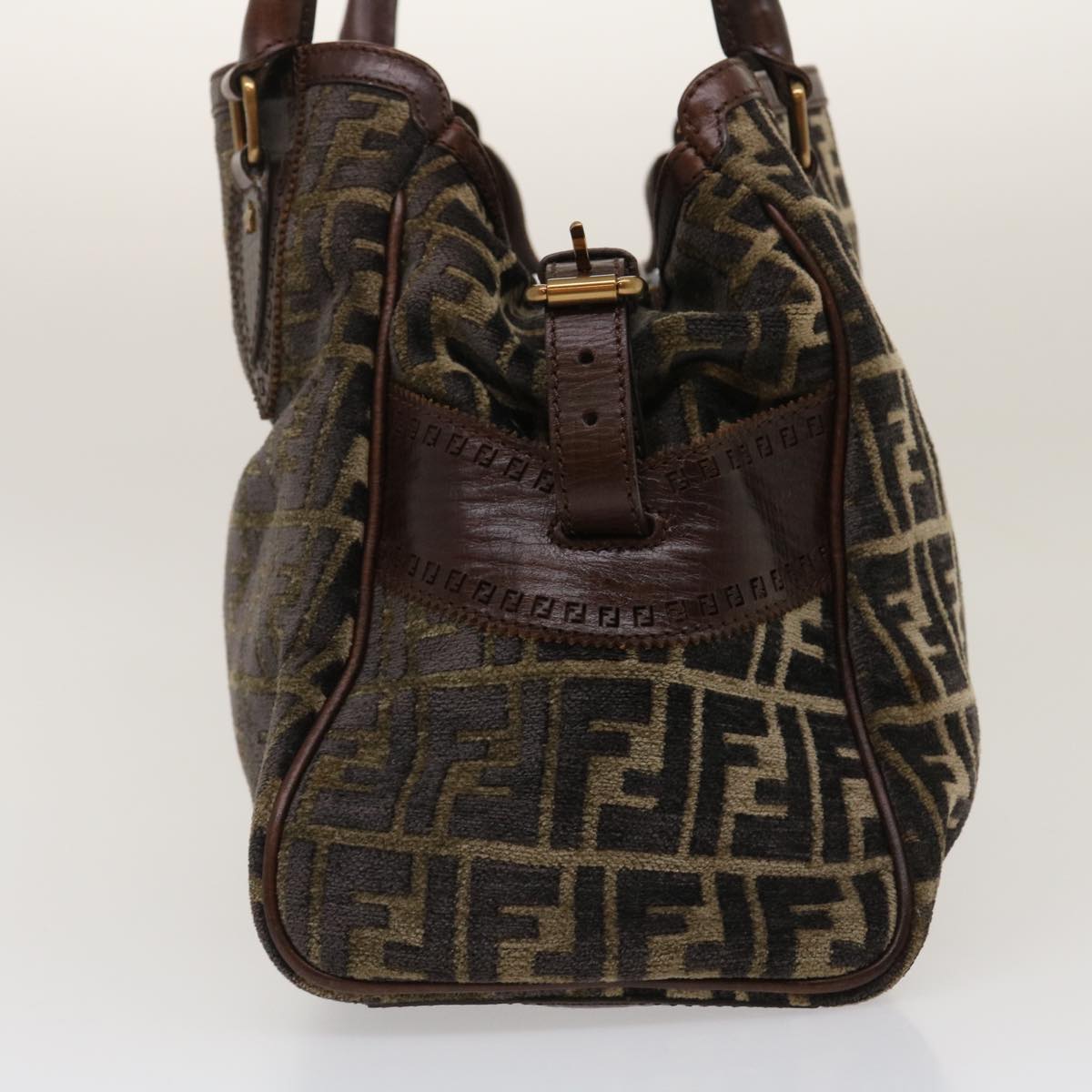 FENDI Zucca Canvas Tote Bag Velor Brown Black Auth ar6954