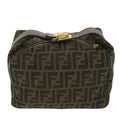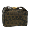 FENDI Zucca Canvas Vanity Cosmetic Pouch Black Brown Auth 37617