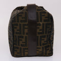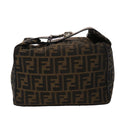 FENDI Zucca Canvas Vanity Hand Bag Nylon Brown Black Auth 48013