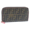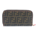 FENDI Zucca Canvas Zip Around Long Wallet Brown Auth th2112