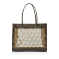 This tote bag features a mesh body with PVC trim, flat straps, and an open top.